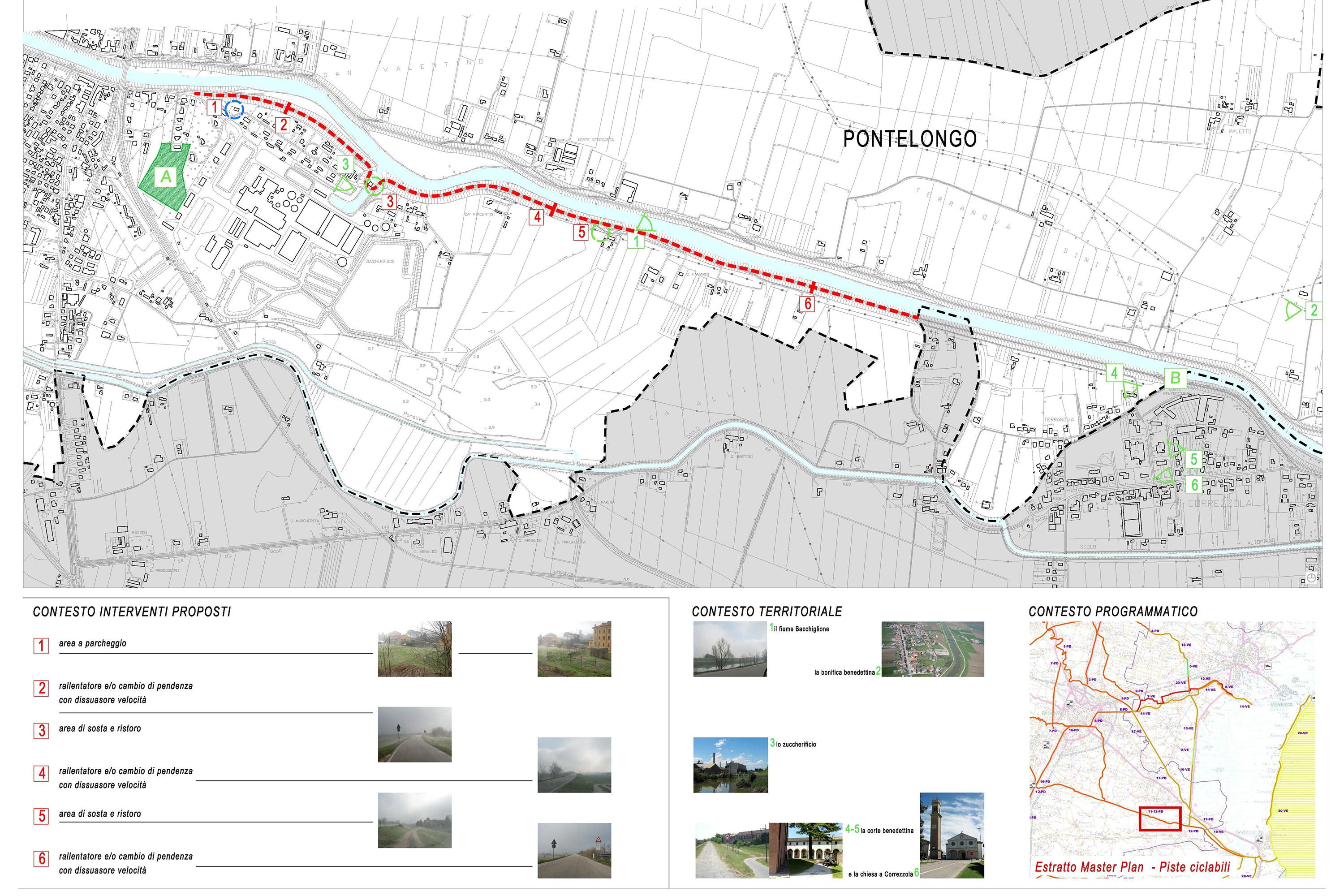 A seguito della D.C.C. n. 99 del 24/12/2009 in cui veniva approvato il Progetto Preliminare per la realizzazione di un percorso ciclo pedonale e di un’area a parcheggio lungo il fiume Bacchiglione è stato redatto da Mosaico Progetti il progetto definitivo ed esecutivo. L’area oggetto di intervento è collocata in Comune di Pontelongo lungo via Zuccherificio, strada arginale del fiume Bacchiglione, che collega il centro di Pontelongo con l’abitato di Corezzola.